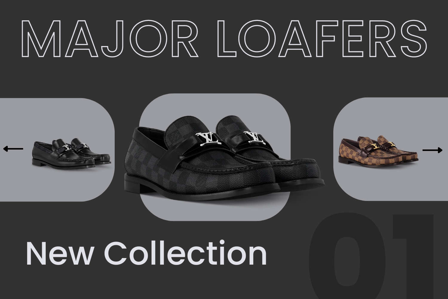 .Louis.Vuitton Grey Check Major Loafers