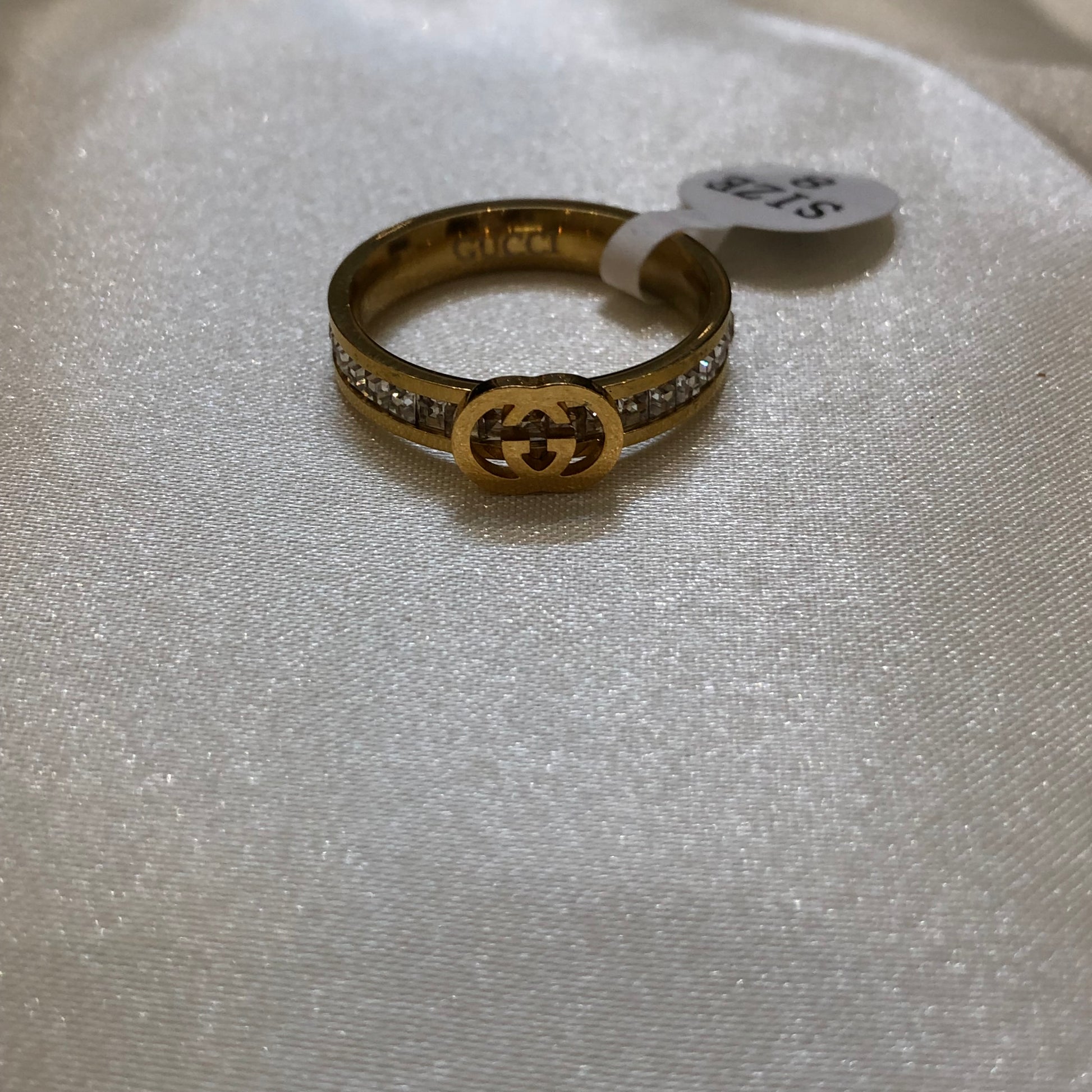 The Gucci GG Logo Golden Ring features a polished golden band prominently displaying the iconic GG logo, symbolizing luxury and timeless fashion. Expertly crafted, this ring offers a refined accessory that enhances both formal and casual looks. Available in Pakistan, it represents Gucci’s commitment to superior design and quality craftsmanship.